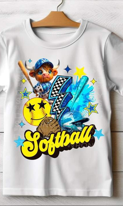 Softball Heifer Lightening Bolt Red or Blue T-shirt