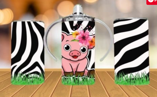 Pig Zebra Stripes Tumbler/Sippy Cup