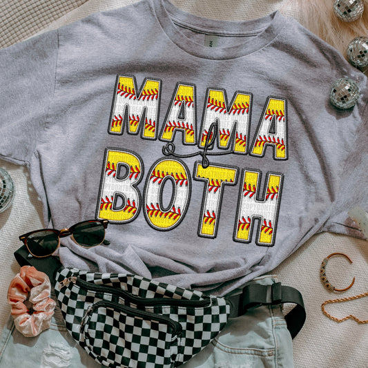 Baseball Or Softball Mama Faux Embroidery T-shirt